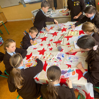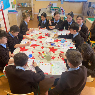 5th class have been studying some interesting artists. They have created abstract art inspired by Hilma Af Klint. They have enjoyed experimenting with water colours and oil pastels to create their own masterpieces.