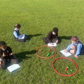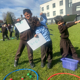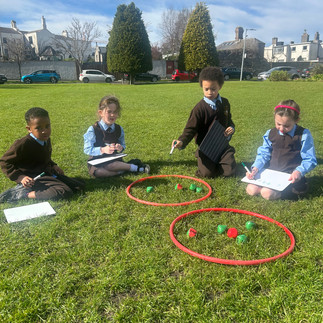 Senior Infants took their maths lesson outside today to soak up the sunshine. They are learning all about the number 9. They used hula hoops and different balls to make the story of 9 and then write their sum. There was some fantastic work going on. Maith sibh!