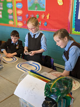We made clay balls, flattened them and chose whether or not to have a ring or filled donut. Once the clay hardened we added a layer of white paint and then colour. We finished the donuts by adding a glaze of PVA glue.